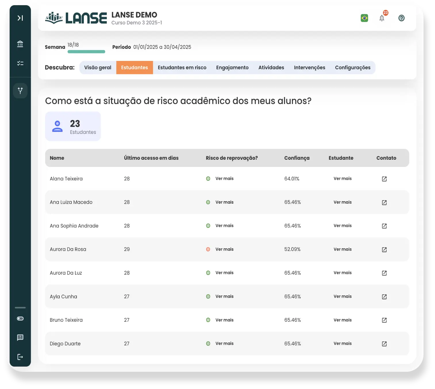 Menos evasão com identificação de risco e intervenções certeiras
